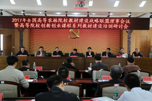 10月27日,2017年全国高等农林院校教材建设战略联盟理事会议暨高等院校创新创业课程系列教材建设培训研讨会在湖南环境生物职业技术学院召开。国家林业局人事司副司长王浩,湖南省林业厅党组成员、副厅长吴彦承,西南林业大学副校长赵龙庆,南京森林警察学院党委副书记林平,内蒙古农业大学副校长王春光,湖南环境生物职院党委书记苏立、院长左家哺,湖南省教育厅职业教育与成人教育处处长余伟良及联盟单位的100多位领导和专家出席会议。